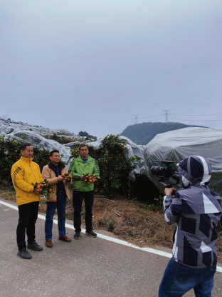 蓝键同学在假期参与了2021年广西柑橘(广州)产销对接云推介会宣传视频的拍摄,为更好地展示广西各大柑橘生产基地风貌、解决在疫情影响下柑橘销售问题做出了贡献。1月25日至28日,蓝键同学与团队前往来宾市象州县、桂林市永福县、贺州市钟山县开展推介会宣传片拍摄工作。团队克服了时间紧迫、拍摄地的距离较远等困难,在拍摄中使用无人机、运动相机、单反相机等多种摄影器材,将果园基地的全貌和柑橘的细节特写充分展现,顺利完成拍摄任务。视频在推介会上发挥了良好的效果。